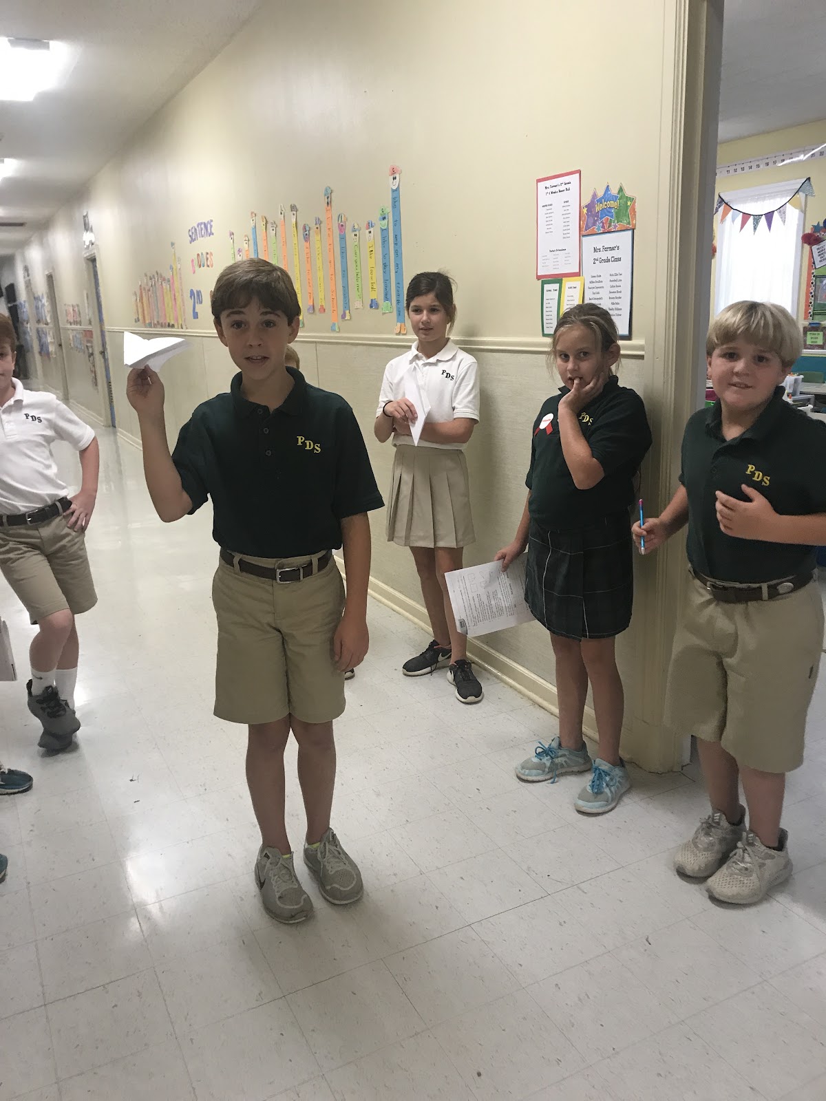The 4th graders designed and built gliders. We then tested them and got an average time and distance.